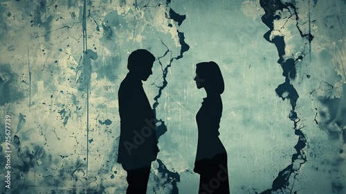 Silhouette couple in marital conflict, facing different ways, hinting at separation