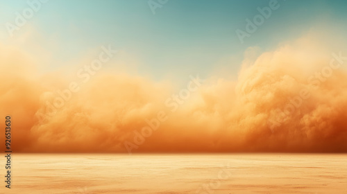 Expansive desert with thick clouds of sand during a sandstorm under a clear sky