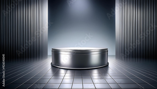 Un podio argentato vuoto, pronto per la presentazione di prodotti in un contesto festivo e _1(171)