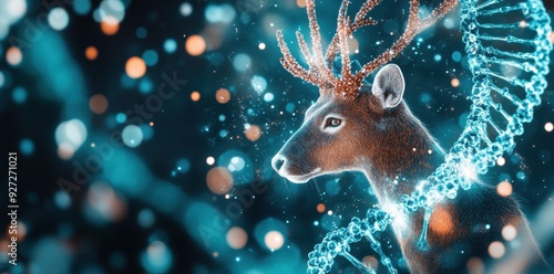 A digital overlay of animal DNA sequences on a wildlife photo, merging the natural beauty of the animal with the underlying genetic code.