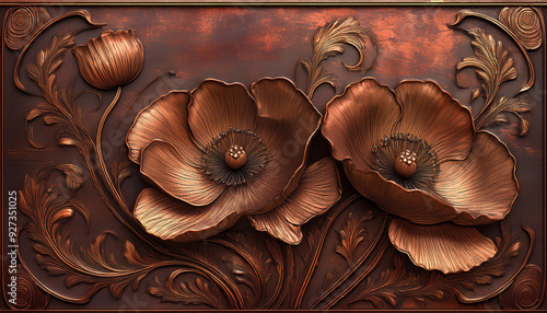 Tekstura vintage, miedziane kwiaty, dekoracja tapeta generative ai