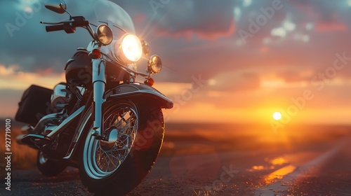 sunset with a motorcycle in the foreground