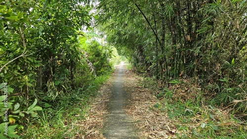 Narrow village street in countryside at Mekong Delta Vietnam.