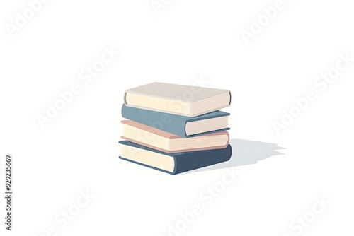 minimalistyczna ilustracja, stos książek, proste linie, stonowane kolory, środkowe umiejscowienie, białe tło, miękkie cienie, delikatna tekstura, subtelne refleksy na okładkach książek, książka
