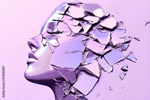 Siła, odporność, kobieta, rozbite lustro, mozaika doświadczeń, refleksja, piękno, wyzwania, pastelowy fiolet, odzwierciedlenie, podróż życiowa, moc, przetrwanie, elegancja, osobowość, transformacja,