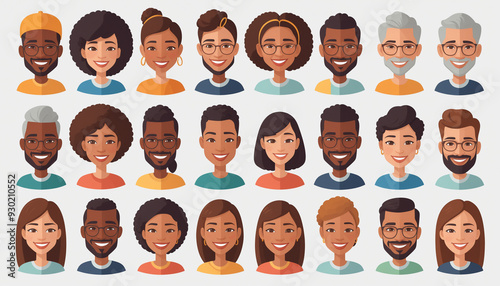Set isolé illustration portrait photo profil avatar personnes diversité.