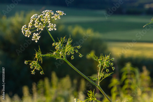 White flowering Caraway plant, or meridian fennel or Persian cumin or Carum carvi, close up