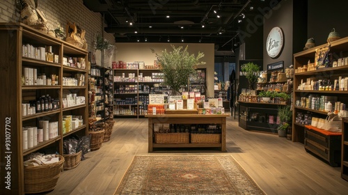 A Luxurious Gourmet Shop With Wooden Shelving Filled With Products