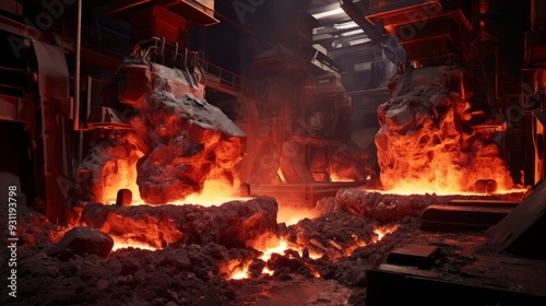 Blast furnace smelting liquid steel in steel mills. Neural network ai generated art