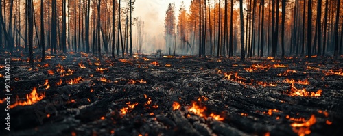 Somber image of a once-lush Mediterranean forest now reduced to ash and embers, highlighting the severity of the wildfires