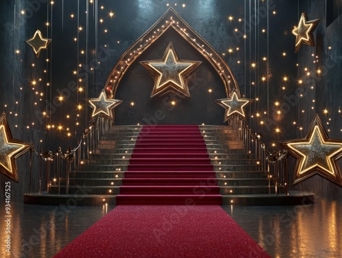 Star on a red carpeted stage, glamorous scene, 3D illustration