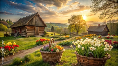 Rustic Countryside natural textures earthy tones flowers spring morning