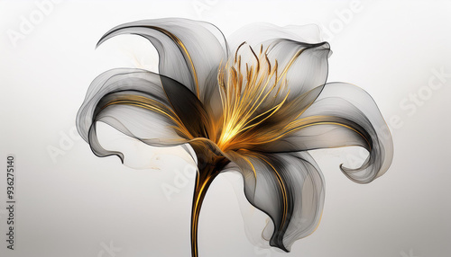 Piękny transparentny czarny kwiat na białym tle, dekoracja tapeta generative ai