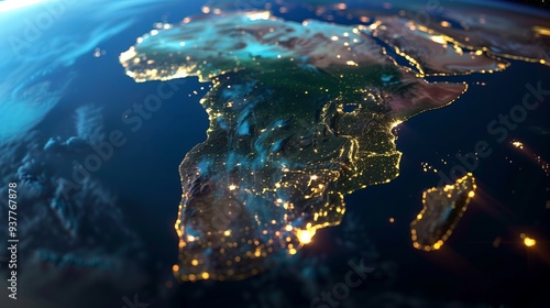 close up of African continent from space at night, with glowing cities light