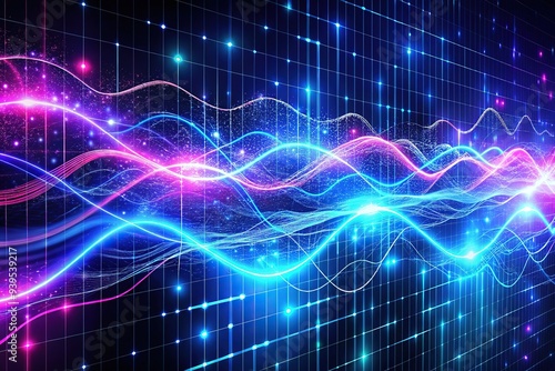 Technicolor flashes illuminate data streams, blue and purple hues dancing across the screen as electrical pulses forge a futuristic tapestry of information.