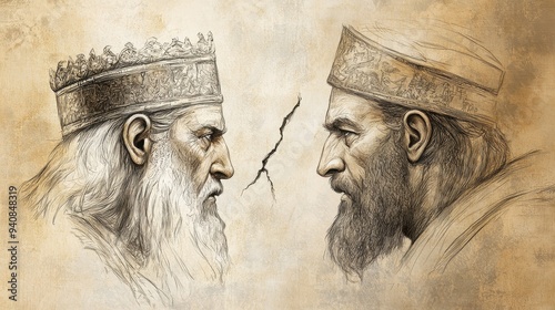 The Revolt Against Rehoboam in 1 Kings: Divided Kingdom of Israel and Judah, A Symbol of Lasting Consequences, Beige Background Bible Wall Art