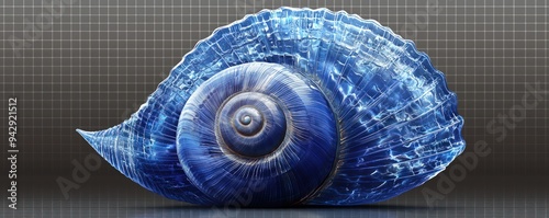 Centered view of a deep blue sea shell, subtle reflections on a clear background.