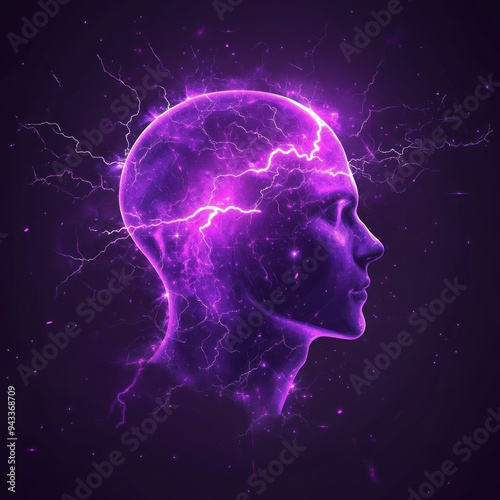 Symbolic purple head with flowing energy currents.