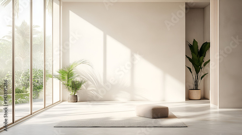 una habitacion sala de una casa o apartamento iluminada con un ventanal y plantas decorativas con entrada de luz exterior
