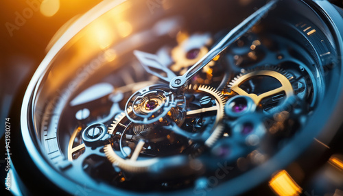 Watch mechanism photographed close up super macro extra macro photo super realism realistic photo studio light soft with gradient --ar 7:4 --style raw
