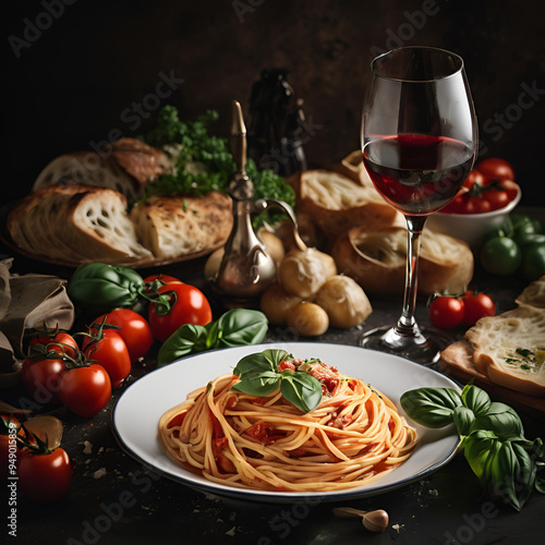 Kuchnia włoska - pasta, warzywa, pieczywo i wino