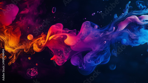 Energetyczny rozbryzg kolorowej farby na ciemnym tle, tworzący dynamiczny i intensywny efekt.