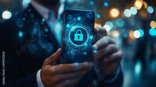 Cyfrowa ochrona danych osobistych z wykorzystaniem zaawansowanych technologii sieciowych. Ikona kłódki symbolizuje cyberbezpieczeństwo.