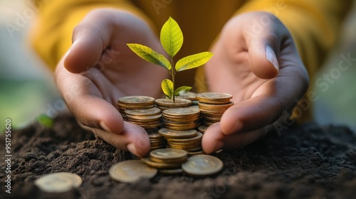 A person protecting a growing pile of coins, symbolizing wealth preservation strategies enhancing financial freedom through passive income streams like real estate and investments.