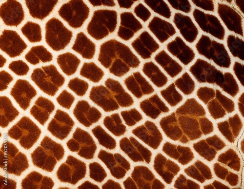 Close-up of a giraffe’s skin, showing its distinctive brown and white hexagonal patterns, highlighting the natural texture and unique geometric design. Ai generated image