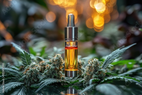 Cannabis Vape Pen with Vapor and Green Background