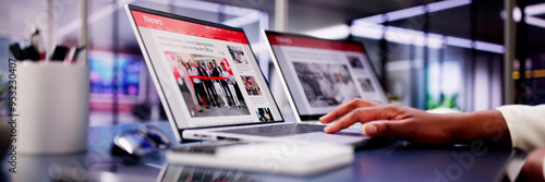 American Woman Views Online News Articles on Laptop and Phone While Relaxing