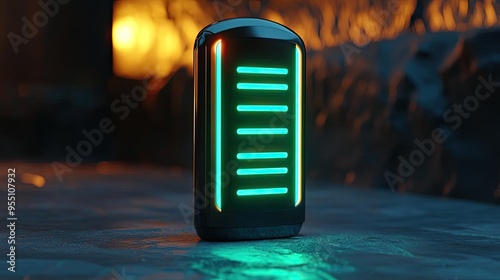 Battery charging icon, with a glowing green bar and a matte black frame, 3D icon