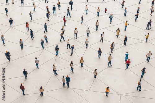 Simple people shapes connected by lines created with Generative AI