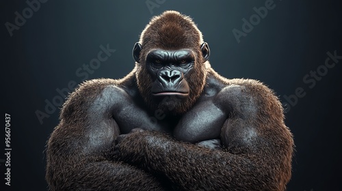 A powerful gorilla stands confidently, showcasing its strength and majestic presence in a dramatic lighting setting.