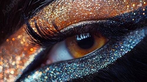 A striking macro photograph of winged eyeliner paired with metallic eyeshadow, highlighting the sharpness of the wing and the reflective quality of the shadow.