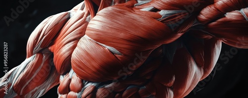 Detailed view of human muscle structure showcasing intricate fibers and anatomical features for educational or artistic purposes.