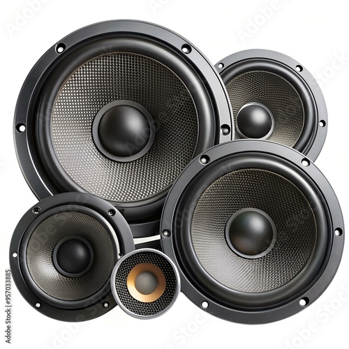 A close up of four different speaker drivers. showcasing their intricate details and professional quality.