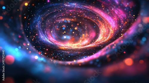 Abstract Swirling Galaxy with Glowing Stars and Nebulae - Digital Art Background.