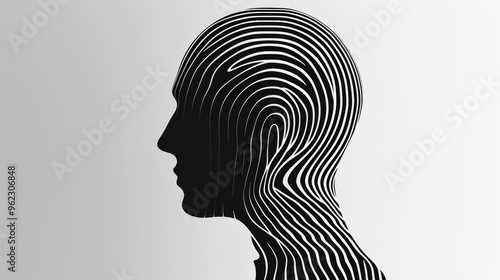 A striking abstract image of a human profile formed by fluid, wavy lines in a monochrome palette. The flowing lines create a sense of movement and depth, evoking thoughts of identity, introspection
