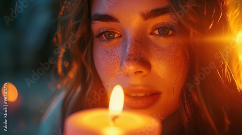 Realistic scene of a woman lighting a candle in memory of a loved one high-definition clarity