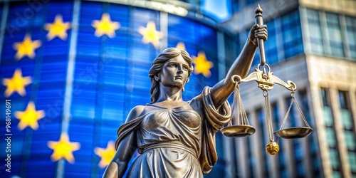 Lady Justice and the EU Flag, Bronze Statue, Scale of Justice, European Union, Law, Justice