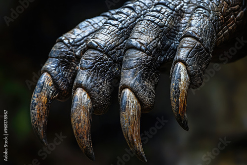 A close up of Velociraptors foot with sharp claws, showcasing its intricate texture