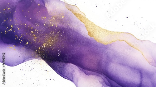 Purple watercolor stain on a white background featuring golden light accents and a shimmering star Abstract design with a magical aesthetic