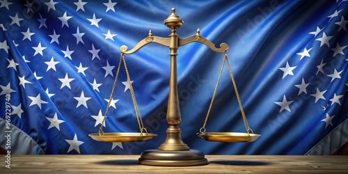 US-EU Rule of Law dispute featuring flags and scales of justice, US, EU, Rule of Law, dispute, flags