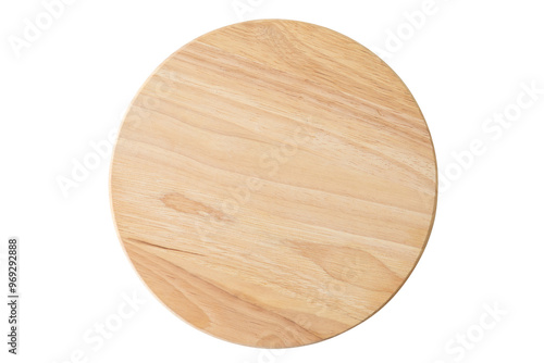 Top view of round wooden cutting board isolated on a white background with clipping path.