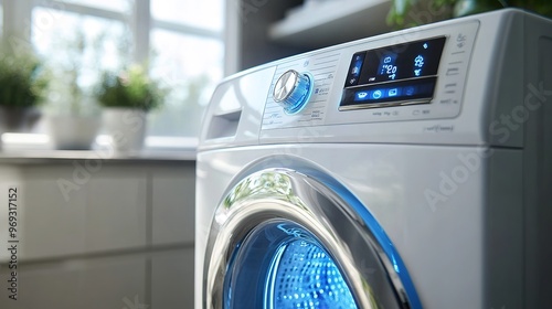 A close-up of an IoT-enabled washing machine being controlled remotely