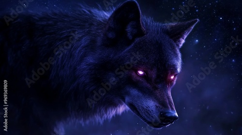 A stunning illustration of a cosmic wolf with vibrant neon colors and intricate patterns combining fantasy and mysticism