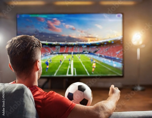 Oglądanie meczu piłkarskiego w telewizji i kibicowanie