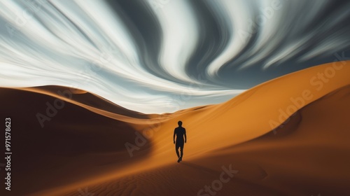 Shifting Sand Dunes: A person walking through a desert of constantly shifting sand dunes, where every step they take causes the ground to reshape itself