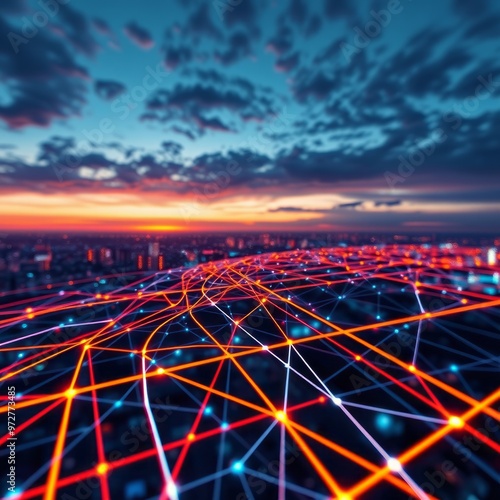 Abstract futuristic network lines background Network technology abstract concept wallpaper long shot scenic professional photograph of